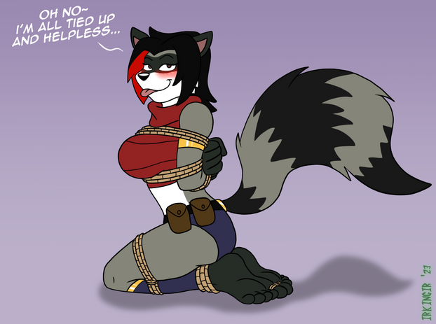 Gatta love some fine hog tie rope work x3 love the little bit with the tail too, looks like shes huffing and puffing quite abit too >3>