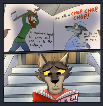 ....I want to see more "Evil Wuff" from the first panel. I admit it, I do. Lol... Snazzy armor there, though.