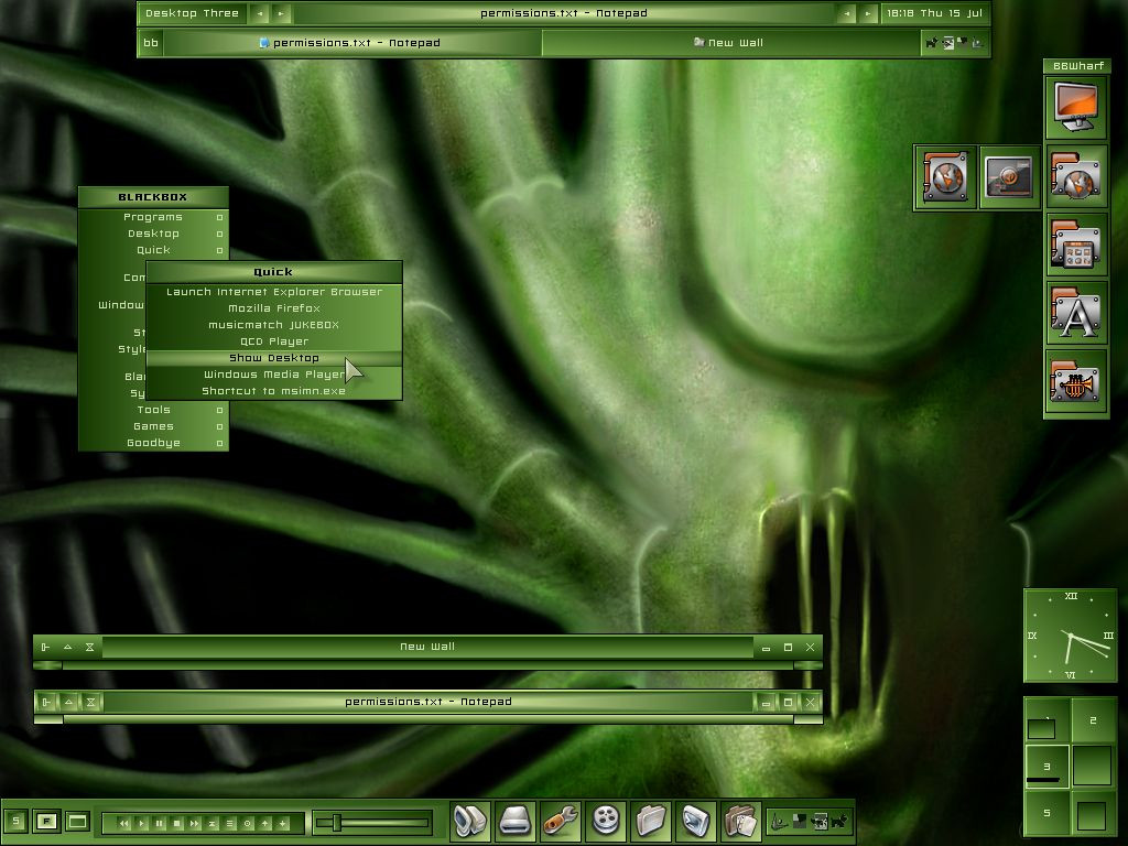 2) Psychi for creating bbinterface and Grischka, the creator of BBLean, for perfecting it. Grischka was kind enough to solve the icons’ distortion problem when I pointed it out to him and release a new bbi version that works like a dream. Get it from [link]
