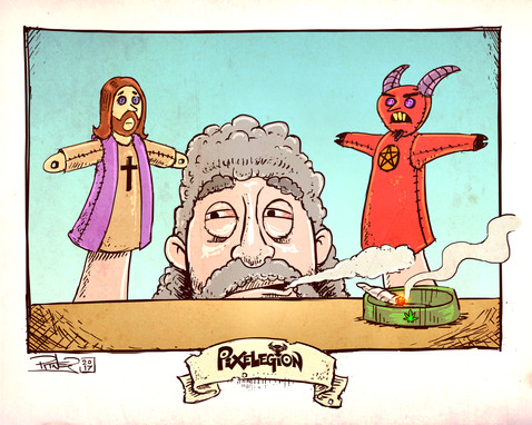 Yep, you get it. It's meant to be commentary on the point that if a hell existed then the responsibility for its existence is placed squarely on the shoulders of the omnipotent god that evangelical christians claim is an all-loving deity. I'm glad you understand that an atheist cartoonist did not literally create a cartoon to express the idea that he thinks there is a devil who sets up torture. Well done.Β