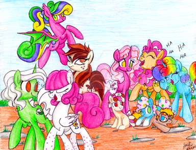 one day after Mrs. Cheerilee class six little ponies were on there way home...Cammi Click, Flying Colors, Blythe, Dull leche, Rhubarb, and Honey Crisp (left to right)