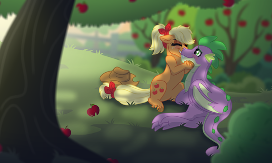 EDIT(6/16/18):I realized that originally I forgot AB's cutie mark, so just went ahead a fixed that ^^'Hello everyone and happy spring! Even though this image takes place in fall I wanted to post something seasonally... if that makes sense... ^^’ anyways here’s another SpikeBloom pic for you all to enjoy!! It has been basically 2 years since I last posted a image of my OTP (geeze) that gap needed to be fix cause I absolutely adore these too!