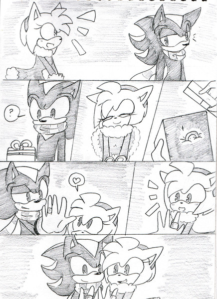 un pequeΓ±o comic shadria dibujo rapido de 20 minutos por eso se ve tan descuidado si se preguntan que dice tendran que imaginarlo Maria le dio un regalo a shadow por que motivo no lo se puede ser por su cumpleaΓ±os ,san valentin ,por que asi lo quiso Maria...bueno la historia la escriben ustedes espero les guste.