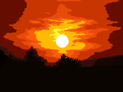 Ahh your dithering is to die for ;o; Such beautiful fluffy looking clouds, andI love the detail of the trees too. You're so talented!