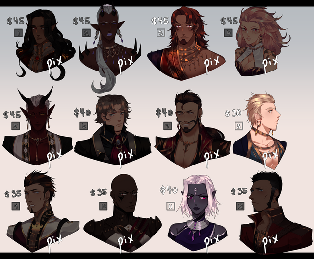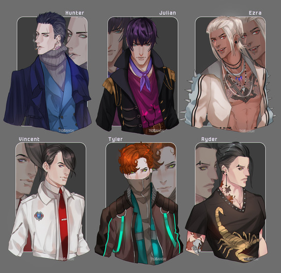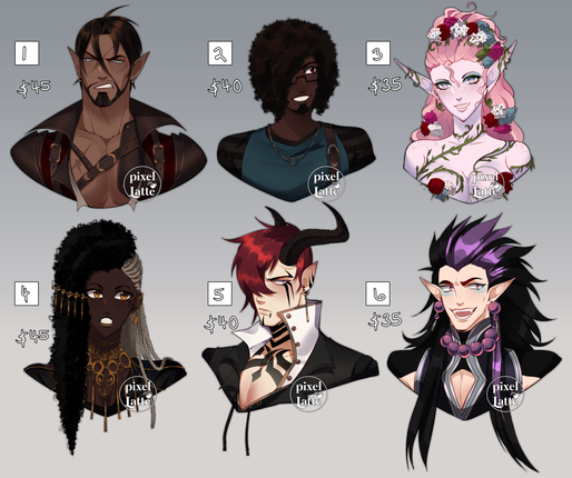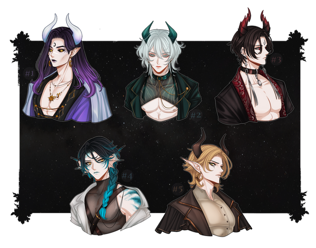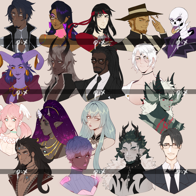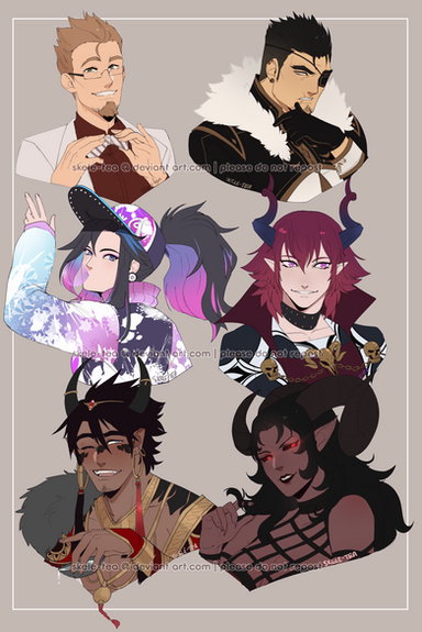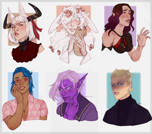 Bust commissions from my latest batch- thank you everyone again for letting me draw your beans! <33characters belong to their respective owners!