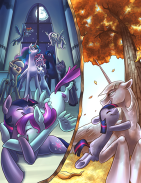 Flying through the blizzard was the worse idea I could have thought off but I couldn't blame myself, I was panicking beyond my standards. When word came that the two got attacked while they trudging through Henosis in the advent of winter, I was the first to react and immediately fly towards their destination. I hope Celestia and Luna were able to relay and send ponies to rescue them... In my panic-addled mind, it was the only thing I could think of. No teleportation, no fancy gimmicks, just me trying to beat the blinding blizzard and getting there, "Damn it to hell... Come on, I'm almost there. Hold on you two, don't go dying on me now!" To this day, I was not so sure my words were just me denying the inevitable or me wishing for them to survive long enough for me to make it... I just hope it's the latter...