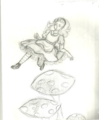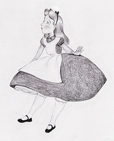 Just what I saw. I kinda imagined Alice tumbling a bit while falling, not just straight down. Hair is often tricky to get right. I think it was useful as an exercise.