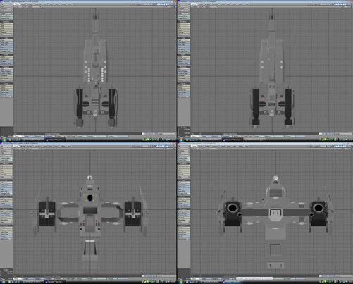 The entire model consists of 10643 triangles in total. The ship is 3864 triangles, the Force sphere is 1984, each of its four parts are 764 each, and the Bits are 868 each. I got a bit lazy here and there, and lost track of how much time it took me to model and texture everything. The modelling was done in Autodesk Maya and the texturing in Adobe Photoshop.