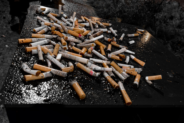 Thanks, I think so too, but I didn't wanna photshop it too much and I didn't want a straight line of cig buts, so I settled for this...