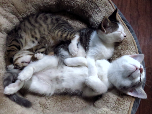 Awww, look, they're hugging each other! So precious! Thanks for all the pictures of your kitties, and I'm sorry about the Mama kitty.