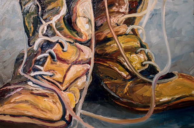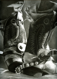 My fathers saddle. This is airbrushed with ink and dye on bristal board. I used virtually no masking, and chose to freehand almost the entire painting. I painted back and forth with ink and bleach to give each layer its own life. This way I could have textures, shadows and dirt and do them one at a time.Related content