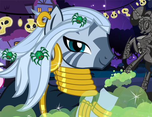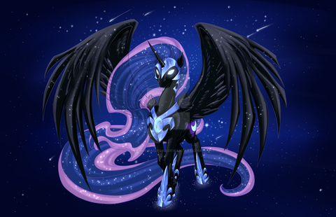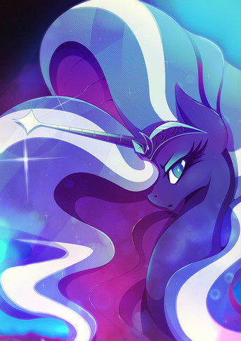 Nightmarity has never been more gorgeous than here. Your art is magnificent! I love that sly little smile you gave her, and the gleam and glitter of her mane and jewels is great.