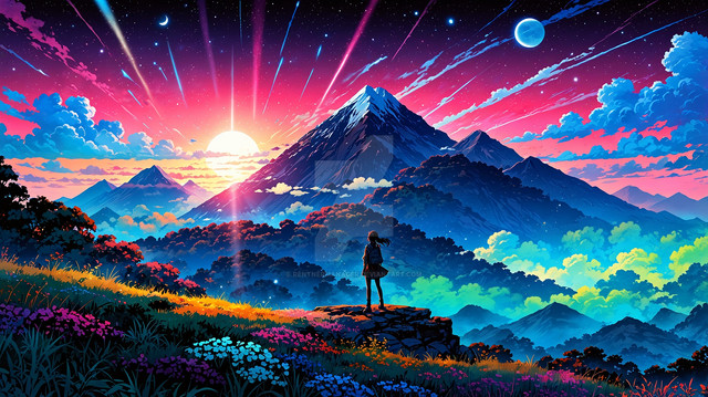 #digitalart #characterdesign #magic #fantasyart #digitalpainting #wallpaper #sky #landscape #rainbow #vibrantcolors #aiartwork