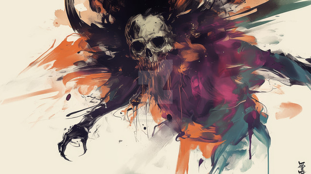 That is amazing! The wing melting together with the undefinable demonic face and the splatter design! GREAT!