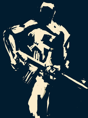 Interesting piece. Looks like a combination of 'Sin City' and '300'.