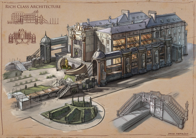 At the start of GOING ROGUE, when players first arrive in Praetoria, they find themselves surrounded on all sides by the looming signature buildings of the Magisterium.Besides Tyrant's 1000-foot tall tower, there're five other ministries, each with their own theme. Fun fact: the name for two of them actually changed during the course of develment, to better reflect Design needs.