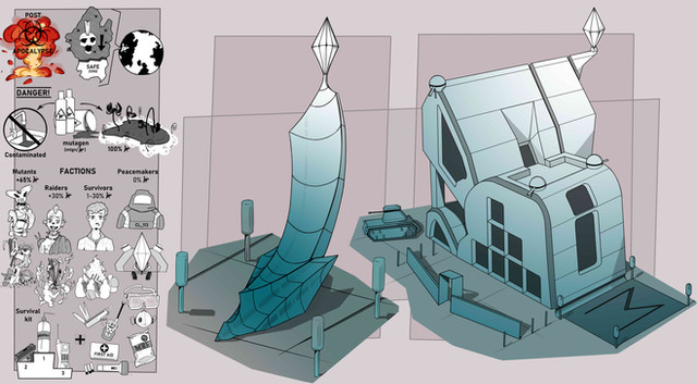Praetoria is a 'dark mirror' universe, and therefore, even mundane things like bus stops, fire hydrants, and park benches needed to be rethought from the ground up. We took some pretty great pains to make sure that everything in the world helped to sell the story.For this particular project, it wasn't necessary to render everything from scratch when photo-manipulation and paintover techniques worked just as well.
