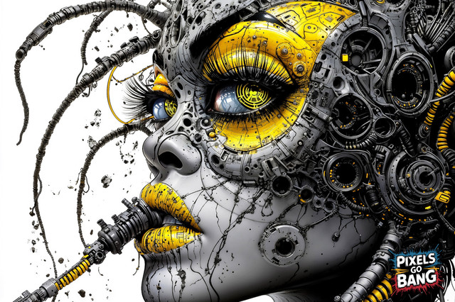 #beauty #scifi #cyborg #portrait #conceptart #cyberpunk #surreal #characterdesign #photography #ai #android #automaton #biomechanical #digital #dystopian #futuristic #industrial #interface #machinery #mechanical #robot #synthetic #tech #wallart #yellow #pixelchemist #aiart #midjourney #synthography #pixelsgobang