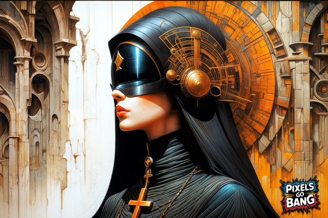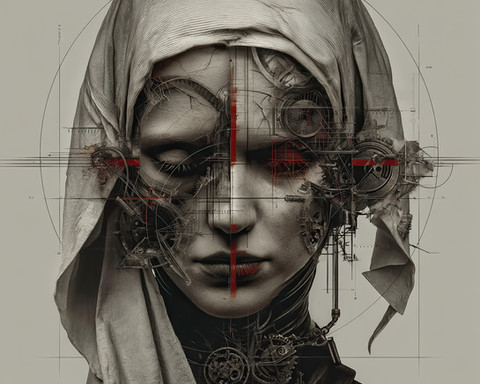 #portrait #beauty #scifi #cyberpunk #robot #cyborg #surreal #android #biomechanical #catholic #claws #contemplative #cybernetic #digital #epic #futuristic #illustration #mechanical #monochrome #nun #philosophical #religious #robotic #spiritual #synthetic #technology #wallart #pixelchemist #aiart #pixelsgobang