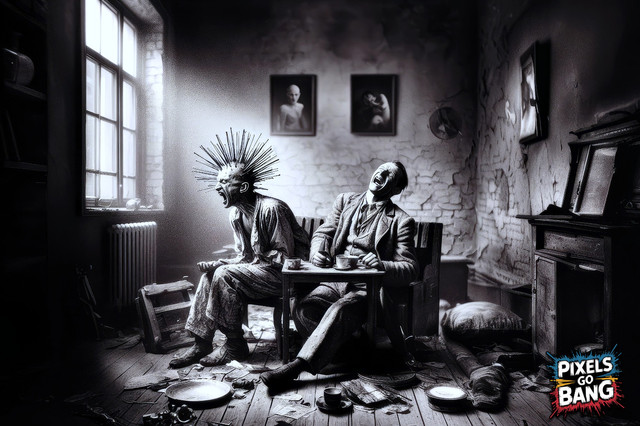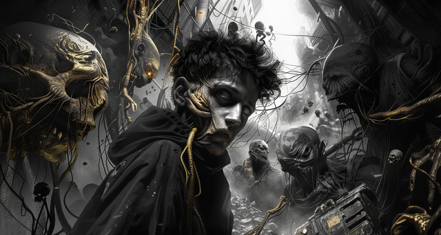 #digitalpainting #apocalyptic #atmospheric #bizarre #cinematic #doorway #dystopian #epic #figure #gothic #graffiti #gritty #grunge #illustration #industrial #luminescent #macabre #monochromatic #noir #otherworldly #sinister #strange #surreal #synthetic #underground #urban #pixelchemist #aiart #midjourneyart #pixelsgobang