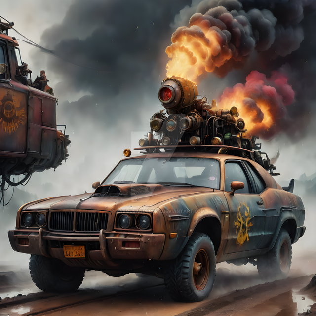 #scifi #vehicle #conceptart #car #fanart #action #badass #crazy #custom #dieselpunk #explosive #extreme #horsepower #hotrod #illustration #industrial #jet #mechanical #missile #modified #races #stylized #wacky #whimsical #wild #pixelchemist #aiart #highoctane #midjourney #pixelsgobang