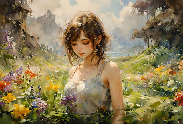 #digitalart #anime #portrait #digitalpainting #cartoon #animegirl #beauty #fantasyart #blonde #contemporaryart #dark #face #female #field #landscape #meadow #visualart #woman #aiart #metshacollective #buy_exclusive