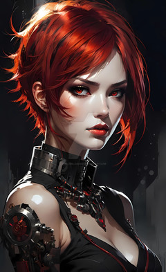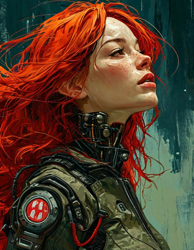 #portrait #warrior #scifi #digitalart #cartoon #beauty #digitalpainting #cyberpunk #android #contemporaryart #cyborg #dark #face #female #redhair #robot #visualart #woman #aiart #metshacollective #buy_exclusive