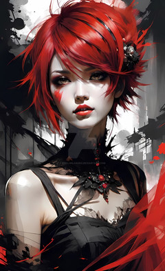 #digitalart #anime #portrait #cartoon #horror #redhair #animegirl #contemporaryart #dark #face #female #visualart #woman #aiart #metshacollective #buy_exclusive