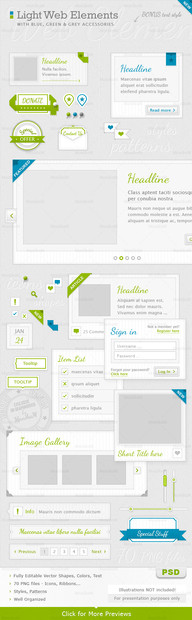 A set of 15 ribbons in a layered and fully editable Photoshop PSD file. All ribbons are made with vector shapes, so you can resize them to any size you wish. You can change colors, text and shapes to suit your needs. There are 2 additional PSD files with the same 15 ribbons in gray color without any text (72px and 300px), and also ready-to-use ribbons in PNG format (without text).You can find more info on Creative Market
