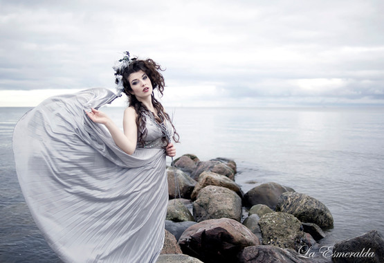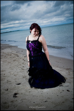 Beautiful dress and lovely porcelain skin. Also like the combination of the background and elements. This is a great photograph.