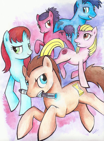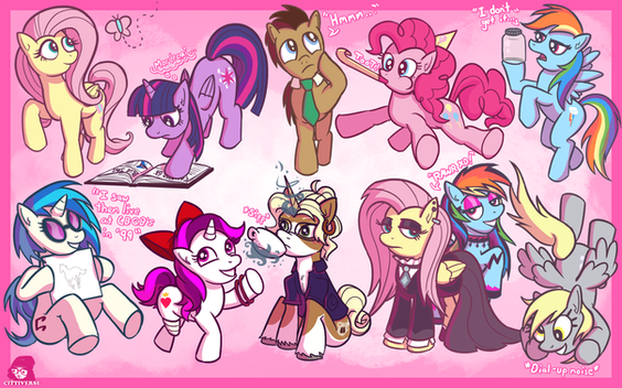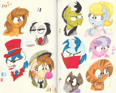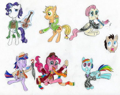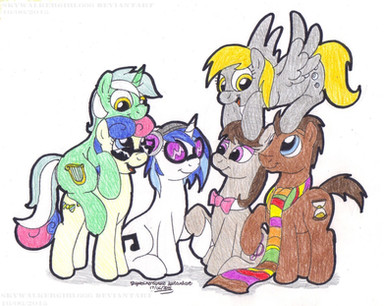 This came about because I wanted to draw Derpy Hooves and Doctor Whooves. It became a general sketchdump with Lyra and Bon Bon, Octavia and Rarity, and an OC sea pony (lol OCpony?) Tide Skimmer and a redesign of the g1 glimmerwing pony Lady Flutter, who was one of my favourite childhood toys.Enjoy|