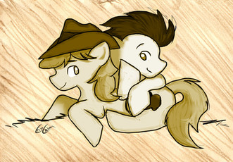 Another quick doodle, this time of Soarin' and Braeburn.Lol, Soarin' came to Appleloosa for the pies and stayed for another reason. XD