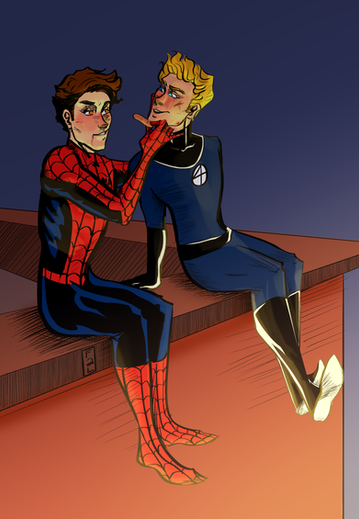 Ok, well, he hadn't been expecting that.It was just one of their normal meetings. They were superheroes, they were young, they were friends, they liked to hang out and talk about their respective, monstrously fucked-up lives. So when Johnny, hovering in mid-air, just deflamed half of his body, reached for him, tucked his mask up and kissed him, all before Peter's reflexes (so much for Spider Sense, he should get his money back for that) managed to kick in, it was shocking. It wasn't that he hadn't been thinking about it - Johnny was hot, Peter had always liked being on both sides of the fence - but, well, this was Johnny Storm. Johnny Storm, dead straight woman-loving heterosexual male. What the hell was he doing kissing him, Peter Parker, not even very hot male man of the masculine variety?