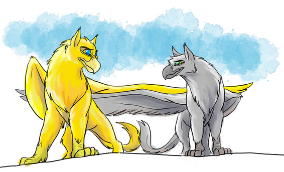 Hahahaha, well, not quite. I didn't draw their legs, but they'd be paws, not talons and hooves. ^^