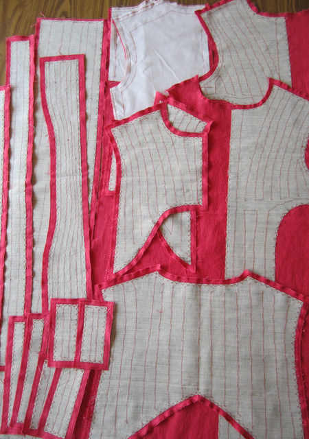13. If you are going to be using boning in the neck corset, use featherlight plastic boning and insert the pieces of boning into the casing created by the bias tape.