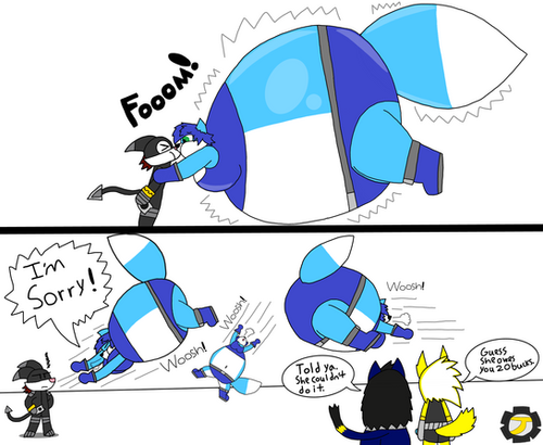 Commissioned by The-Stellar-Swotter ft. Rag-n-Roll ΒLab Rat has gotten Meo-Ware, aka Lola, on the ropes with her inflating Β chemical spit.