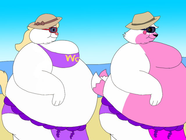 A pic for a Contest Entry with MJ455Alice takes her littlest daughter, Dally, and eldest granddaughter, Abigail out for a beach day. They had some special ice cream that made them fatten up or made them into a blueberry like Abigail. Despite the extra weight it's a relaxing day at the beach.