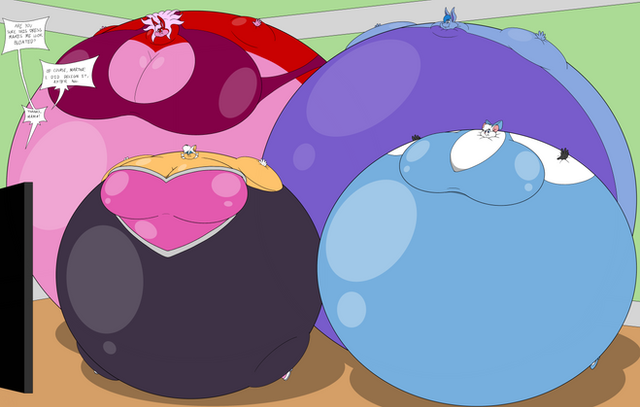 Second half of a commission by Marty-Samoyed ΒWe see inside Cynthia is not only being pushed in by her kids, but pulled in by Toriel and co. Miss Kitty was in there too, but she currently is too blown up to do muchΒ