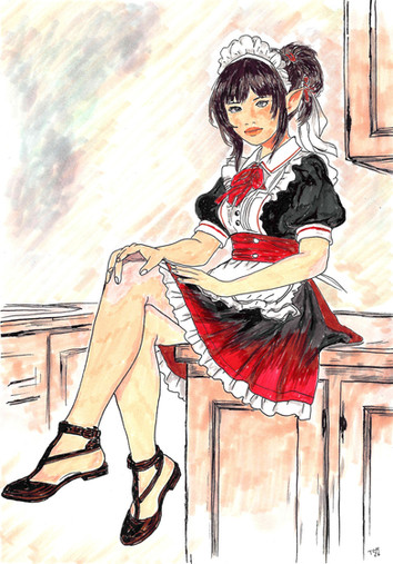 line art drawn with pencil, coloured in painterIX, edited in photoshop