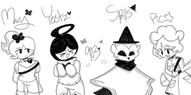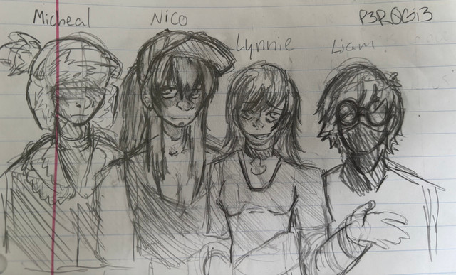 These 4 are The Self Inserts! Originally created as simply placeholders for Y/N fanfictions, it is clear by this drawing that they have evolved since then. Now, they serve as main characters for one of my stories.Orginal Counterparts: