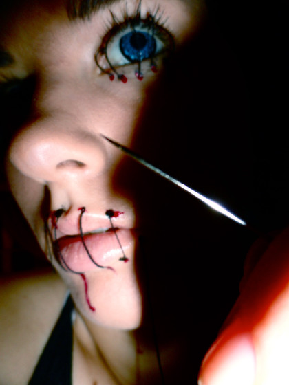 I really like how the needle is attached and how a black line continues as though it were the thread ^_^ And lovin those purple eyelashes gurl *Ghetto. Say what? xD*