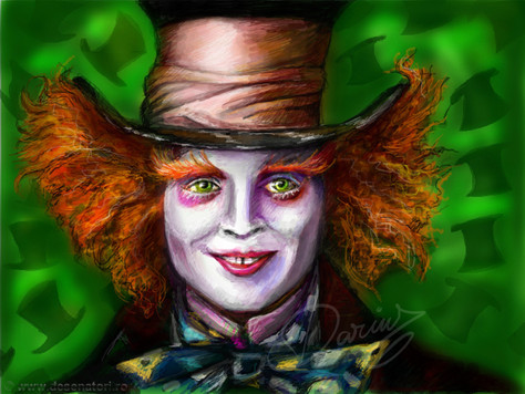 This is amazing! BEST illustration of the mad hatter i have seen! it looks almost exactly like johnny depp! I love the definition you put into the cheeks also! this is VERY well done!!!!!!!!!!!!!!!