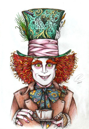 I disagree with how you drew the Mad Hatter. The Mad Hatter is, by his name, Mad! He shouldn't be frowning seriously as if he has just noticed several armed men aiming at a puppy. Your skill is great, i just disagree with how you portrayed the Hatter. Perhaps this is just me, Perhaps you have chosen to portray a darker, more serious side of the hatter.