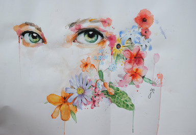 The flowers from the eyes and the dragonflies really seem to draw me into this picture.