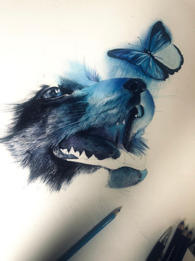This is so gorgeous, I love your style of taking the color and bringing it out of whatever is in the art piece with that splatter drip effect you have. I can't even explain it right, but it's beautiful. Also in this particular piece the bright colors of the butterfly contrasting with the dark ones of the dog is a very stunning effect as well. You are an amazing artist, your work is always so visually and emotionally pleasing.