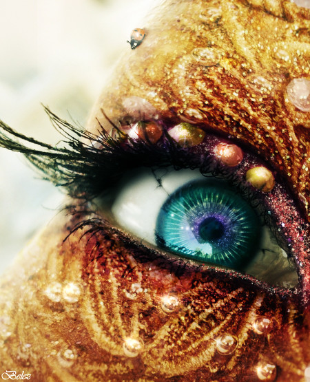 Wow, that is really beautiful. I never thought I'd call a snail beautiful, but this picture makes it so! The beautiful blue color around your eye enhances the eye color and matches beautifully with the yellow flower petals. Lastly, the red eyelashes ties in much better than I would originally think with the rest of the colors, especially since it's just a small touch.