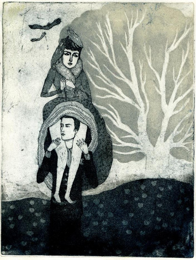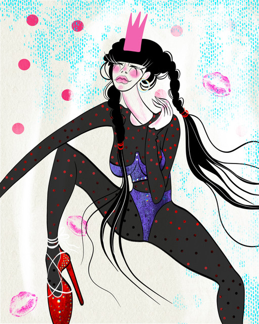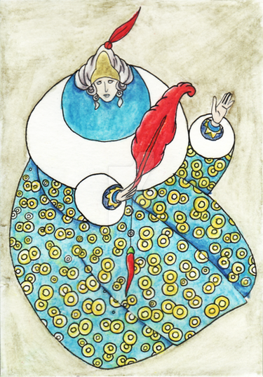 Great expression, she has a lot of movement. This reminds me of stained glass iconography.