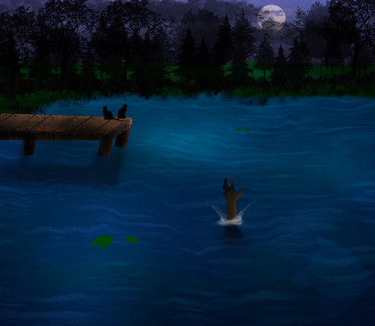And an added skeleton chilling by a pond