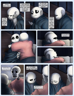 So far (just caught up) this is quite sweet~ It's one of the first times i've read an AU with a new original skele, like a grandpa especially~ The colors and lineart is just really refine! (hehe getting into the title as joke~) Keep up the work~ It's always sad yet somehow... satisfying (sorry sansy) to see him just break down sad and spill fillings. Because we all know he hides them and just really needs to talk.
