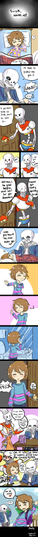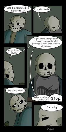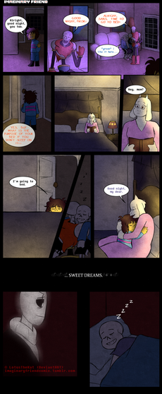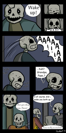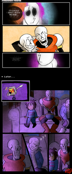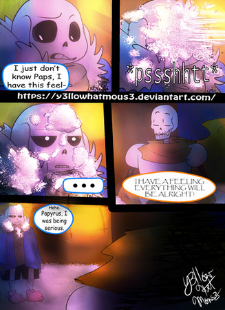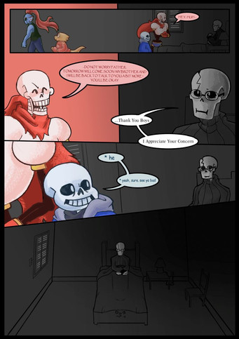 I like how many Undertale fans are so devoted to this game and the characters and even make fully colored pages. Just reading colored pages makes me feel much more interested in a comic and it makes me feel like watching a movie. And damn, that little Papyrus jumping straight out of his bed just to console and look after his big brother. It's just so cute.